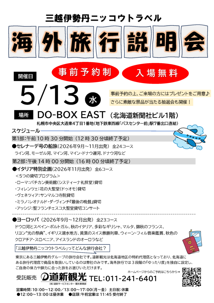2026年5月13日(水)三越伊勢丹ニッコウトラベル旅行説明会