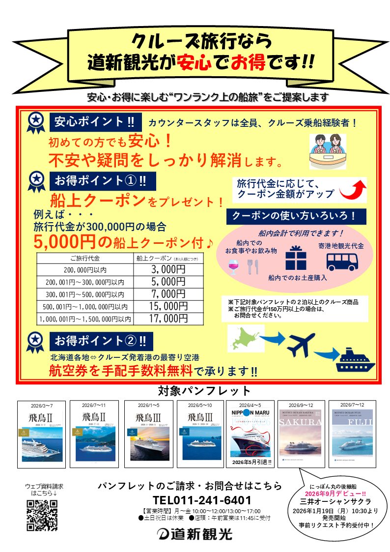 クルーズ旅行なら道新観光が安心でお得です!