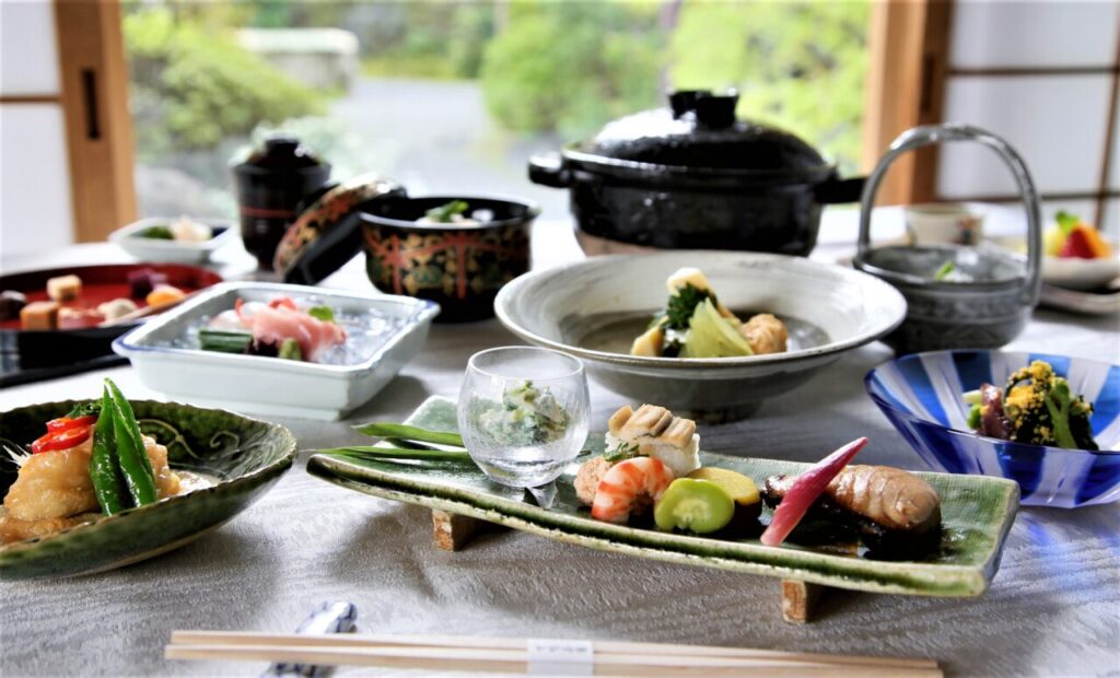 自然に囲まれた京奥の料理旅館・野草一味庵「美山荘」で名物の摘草料理を楽しみます。京都中心部では、創業170年の伝統を誇る「下鴨茶寮 本店」での京料理を、「レストランひらまつ高台寺」でのフレンチのコースランチもご賞味いただきます。| 食事条件 | 朝2・昼2・夕1 |